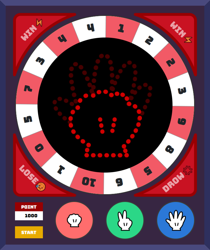 가위바위보 승리 시, 베팅 (1000 P) * 당첨 포인트 만큼 가져갈 수 있습니다.